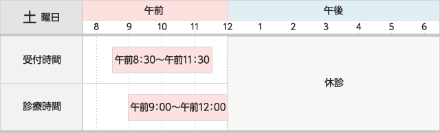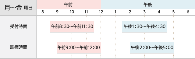 午前9:00 ~ 午前12:00 午後2:00 ~ 午後5:00